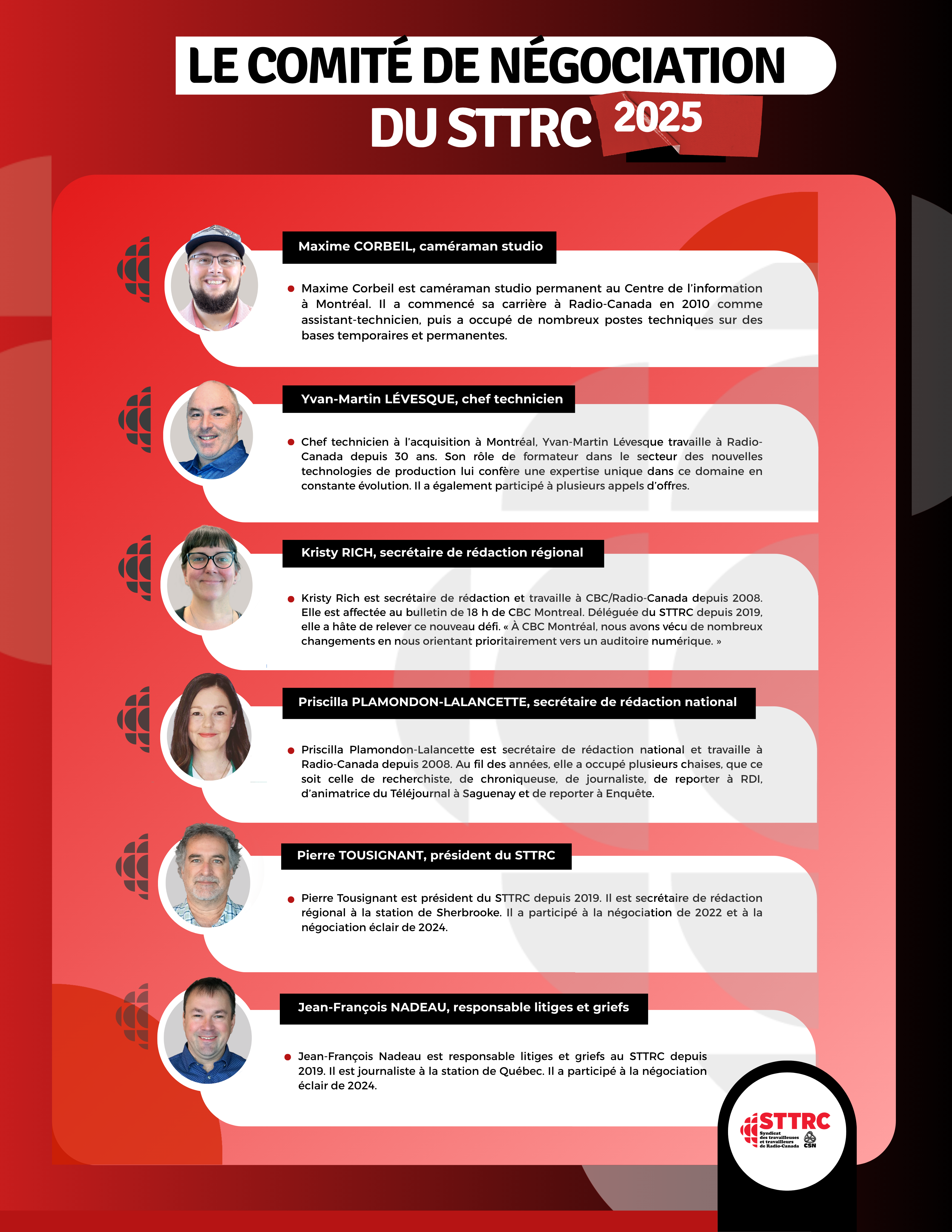 L’actuelle convention collective qui lie le STTRC à Radio-Canada vient à échéance le 31 mars 2026.